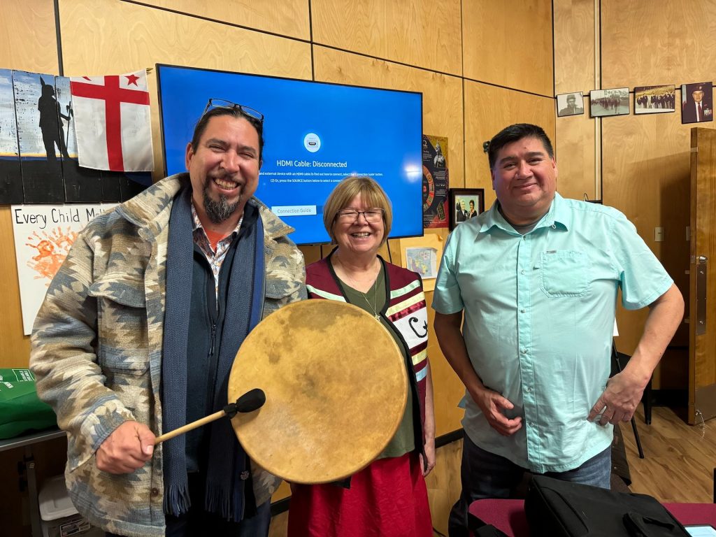 Our first segment, the Mid-Winter Youth Mawio’mi, took place at the Membertou Heritage Park. Commencing with a community feast and a ceremony led by Elder Yvonne Meunier, attendees participated in a sacred offering of a spirit plate to Apuknajit, the spirit of winter. Followed by Jeff Ward singing the bear song in honour of the recent passing of Danny Paul, a knowledge keeper, pipe carrier, dancer, and hunter in our community of Membertou. Then speaker Clifford Paul, the Moose Management Coordinator at the Unama’ki Institute of Natural Resources, enlightened the audience about crucial concepts central to Mi’kmaq ways of knowing and being. Participants delved into the essence of sustainability through the lens of Netukulimk, which encapsulates Mi’kmaq sovereign law and advocates for responsible stewardship of natural resources for the prosperity of future generations. Additionally, M’sit No’kmaq underscored the interconnectedness of all living beings and emphasized the importance of gratitude and reverence towards the Creator. The principle of Two-Eyed Seeing, an approach to learning, blending Indigenous knowledge systems with Western knowledge systems.
