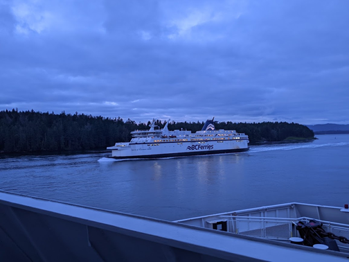 Dans le cadre de mon stage d'action directe Portail Océanavec le BC Cetacean Sightings Network (BCCSN), j'ai eu l'occasion de participer à un relevé des marsouins communs sur l'île Saturna. Je me suis réveillé à 5 heures du matin le premier jour, excité par le voyage. Alors que je me dirigeais vers la gare maritime de Tsawwassen, le ciel était complètement noir. C'était la première fois que j'embarquais à pied sur un ferry.