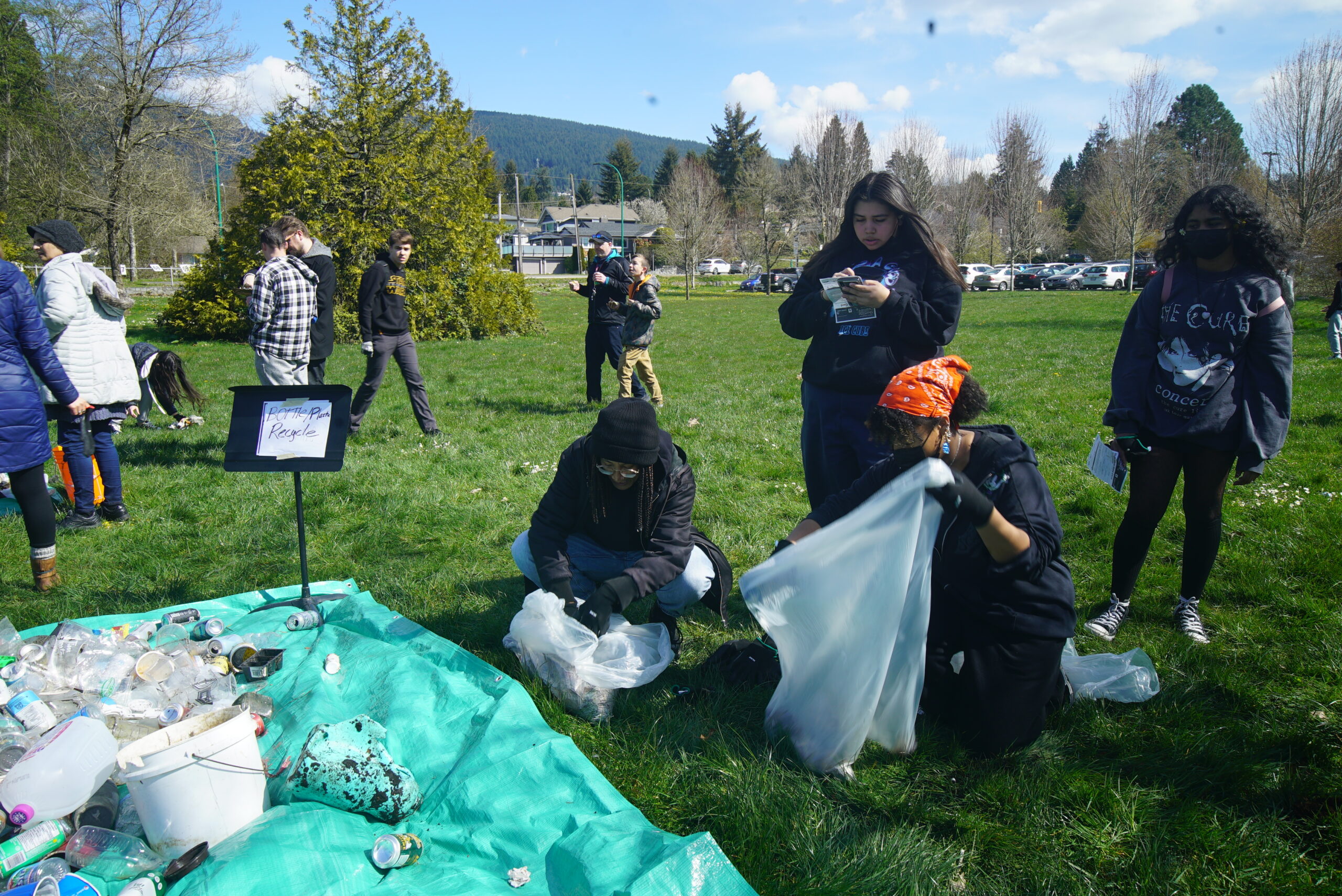 Nettoyage des rivages d'Ocean Wise a aidé le district scolaire à organiser des opérations de nettoyage des déchets dans les écoles de North Vancouver, notamment en formant des élèves leaders et en fournissant des fournitures. Dans le cadre du nettoyage à l'échelle du district, près de 4 000 élèves de tous âges ont ramassé des déchets dans leur communauté. Les élèves ont trié les déchets pour en extraire les éléments recyclables et ont consigné leurs découvertes sur des cartes de données en tant que citoyen.ne.s scientifiques. Les déchets ramassés dans les communautés scolaires comprenaient des aliments et des boissons à usage unique, du papier, des textiles mis au rebut et quelques objets aléatoires, dont une bouilloire et un pneu !