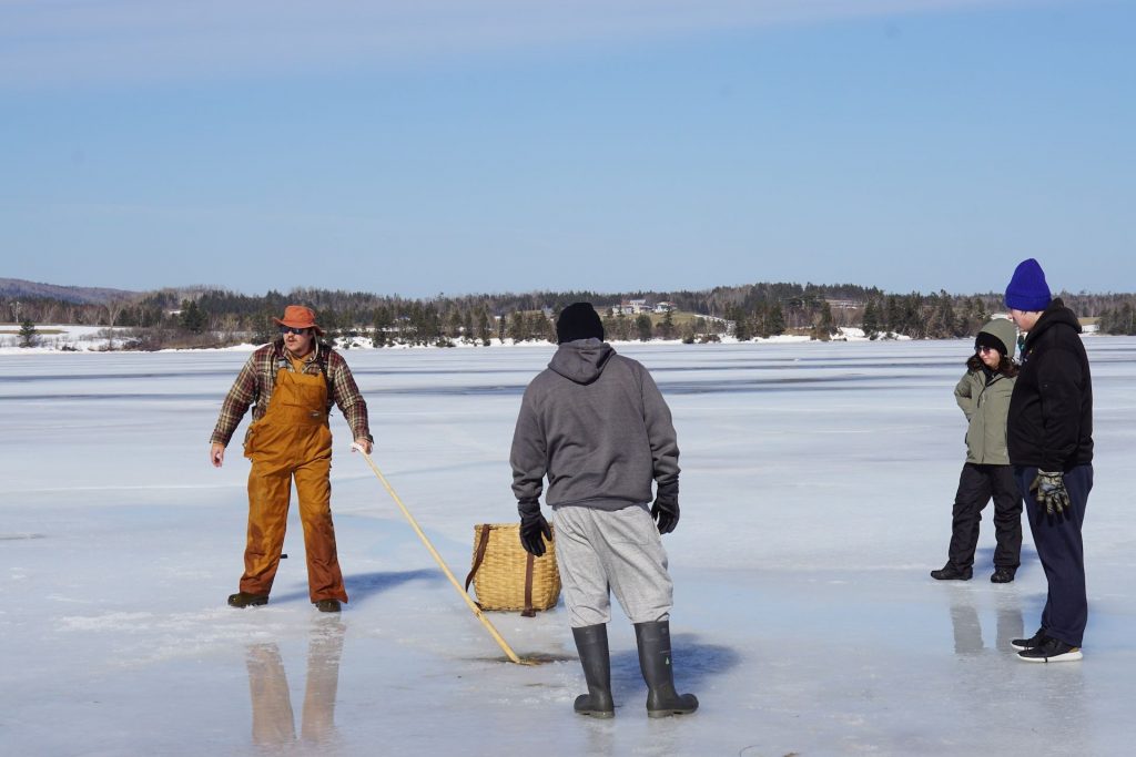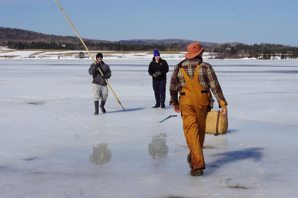 In the subsequent segment, attendees engaged in a hands-on winter eeling workshop led by James Doucette of Reclaiming Our Roots. Through experiential learning, participants learned traditional techniques of spearing for eel in the mud, while respecting the eel’s role in Mi’kmaq culture and ecosystem. An integral aspect of the workshop was the ceremonial offering of the first catch to the kitpu (Bald Eagle), symbolizing gratitude and reciprocity with the natural world. Participants also learned how to skin and process the eel, preserving ancestral knowledge for future generations.