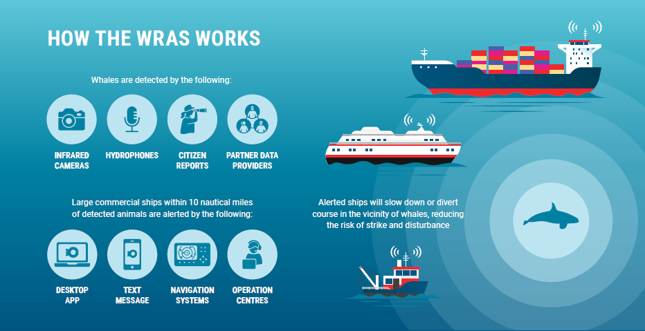 Yes – the WRAS uses whale detections from infrared cameras, hydrophones, and citizen sightings through partner data providers. See the WRAS Webpage for more information on our partner data providers.