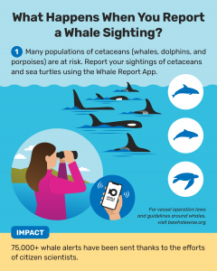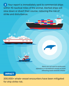 Your real time sighting reports create safer waters for whales by reducing the risk of ship strike and disturbance.