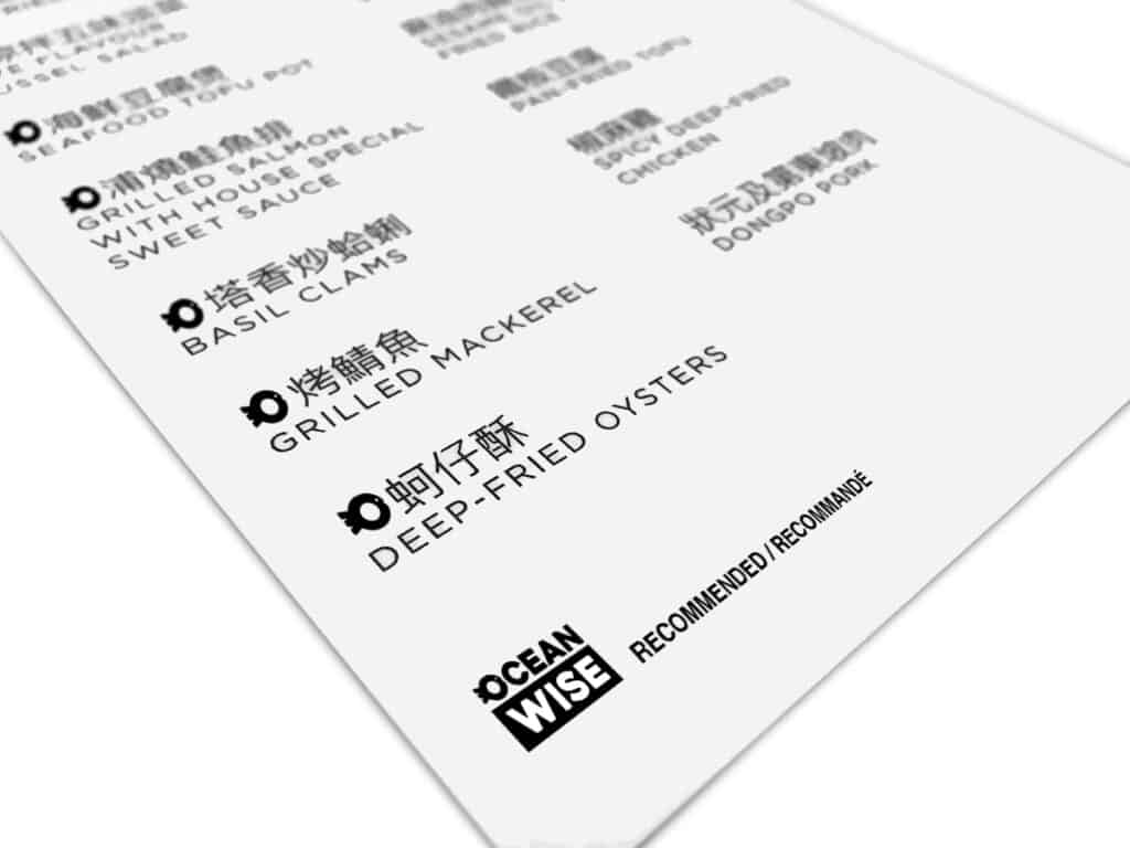Vous trouverez le nouveau symbole Ocean Wise Seafood partout où vous trouverez des choix de produits de la mer respectueux des océans : sur les menus, les emballages et les comptoirs de fruits de mer. Le processus de recommandation du programme Ocean Wise Seafood ne changera pas. Même programme fiable, nouveau look dynamique !