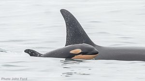 An easily recognizable northern resident with a dorsal fin notch obtained from an injury.