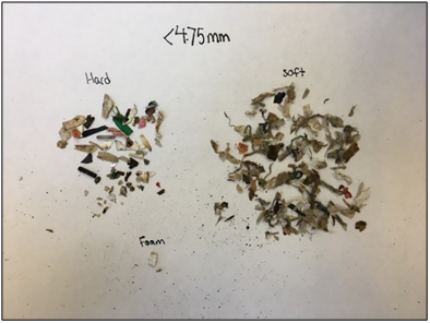 The Plastics Lab discovered that smaller plastic pieces were more abundant and diverse in the compost samples. That means that larger plastic pieces are breaking down into smaller pieces and are the main source of microplastics in our compost! We refer to the breakdown of plastics into smaller pieces as secondary microplastics. The alternative are primary microplastics which are factory made to be small, such as microbeads or nurdles.