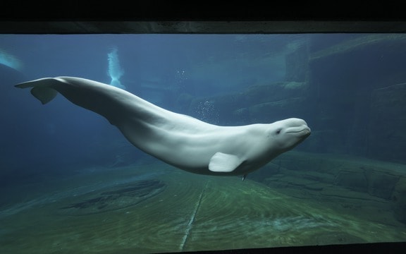 The Beluga’s white skin helps it to camouflage with the ice in its habitat so it can hide from predators like Polar Bears.