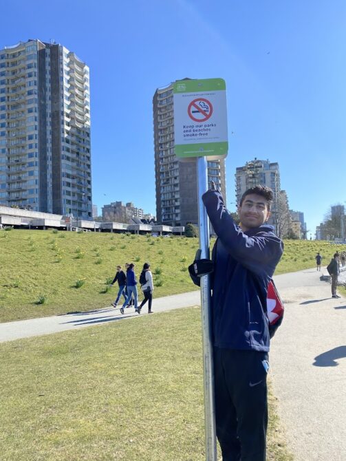 After seeing the amount of cigarette litter along English Bay Beach, Armaan, Givon, and Anna knew that they wanted to educate others about the harmful impacts of throwing your cigarette butt on the ground.