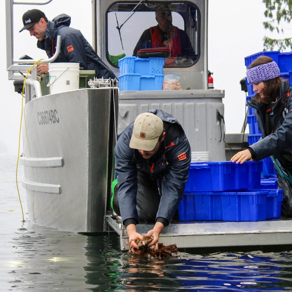 2024 was a milestone year for kelp restoration at Ocean Wise, marked by incredible collaborations and impactful projects. We transplanted our first batch of sugar kelp (grown at the Ocean Wise Kelp Nursery) in Burrard Inlet with help from partners at the Granville Island Sea Village and Biotherm. With the Tseshaht Nation, we also transplanted nearly 2,000 giant kelp sporophytes with the help of three high school students from School District 70 in Barkley Sound, part of the Tseshaht hahuułi.