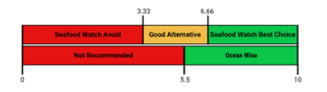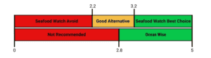 Un produit de la mer provenant d'une pêcherie de capture sauvage peut être considéré comme Ocean Wise Recommandé s'il obtient une note supérieure à 2,8 sur 5 sans aucune note critique.