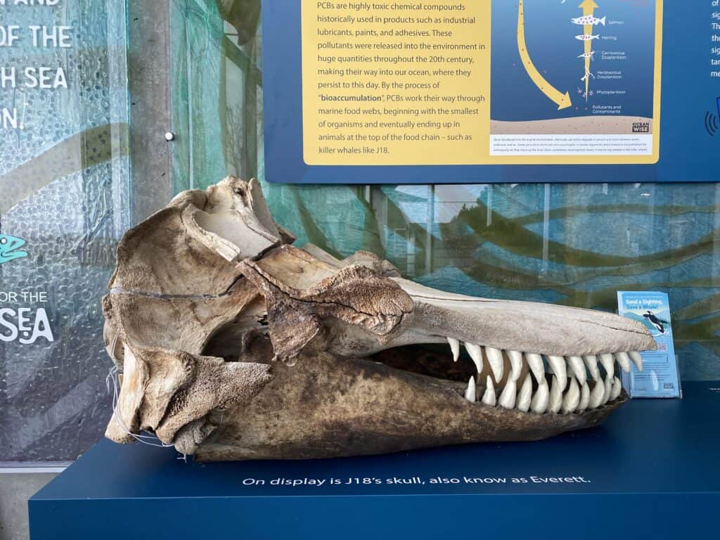 Everett’s skull will be on display at the Shaw Centre for the Salish Sea alongside a video on specied ID presented by Ocean Wise. His tragic story serves as an important reminder of the impact human activities have on our oceans and demonstrates the simple, everyday actions community members can take to help protect the iconic animals that call these waters home.