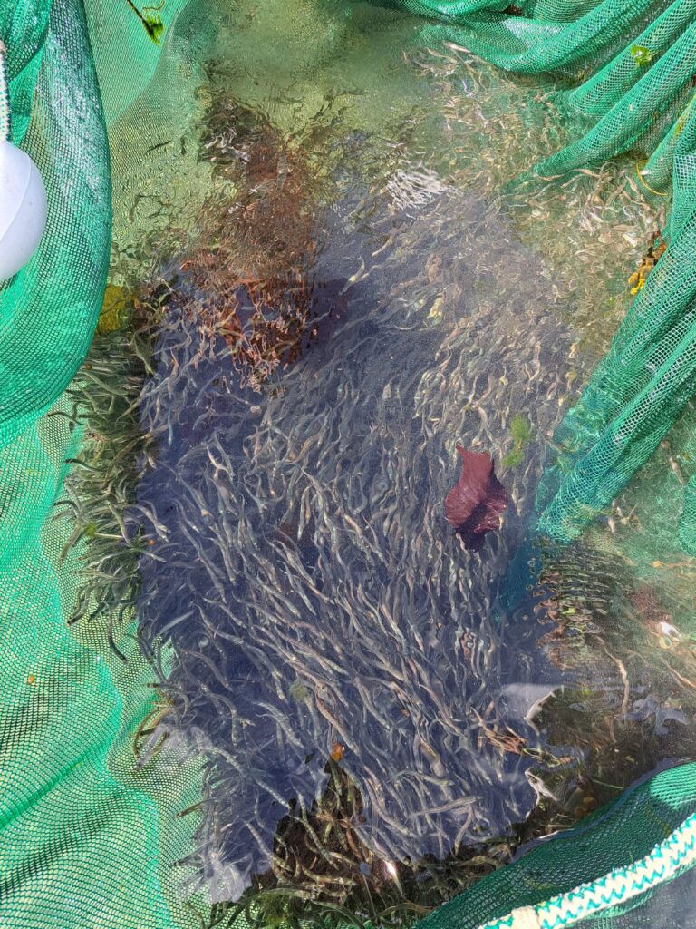 Participants work primarily in the field and occasionally in remote locations under the supervision of the Marine Ecologist Team Leader. During the placement, they participate in: early morning low tide beach seine fish surveys in eelgrass meadows and forage fish sand habitats, kelp surveys; marine mammal surveys; laboratory analysis of eelgrass and sand samples; and data entry and management.