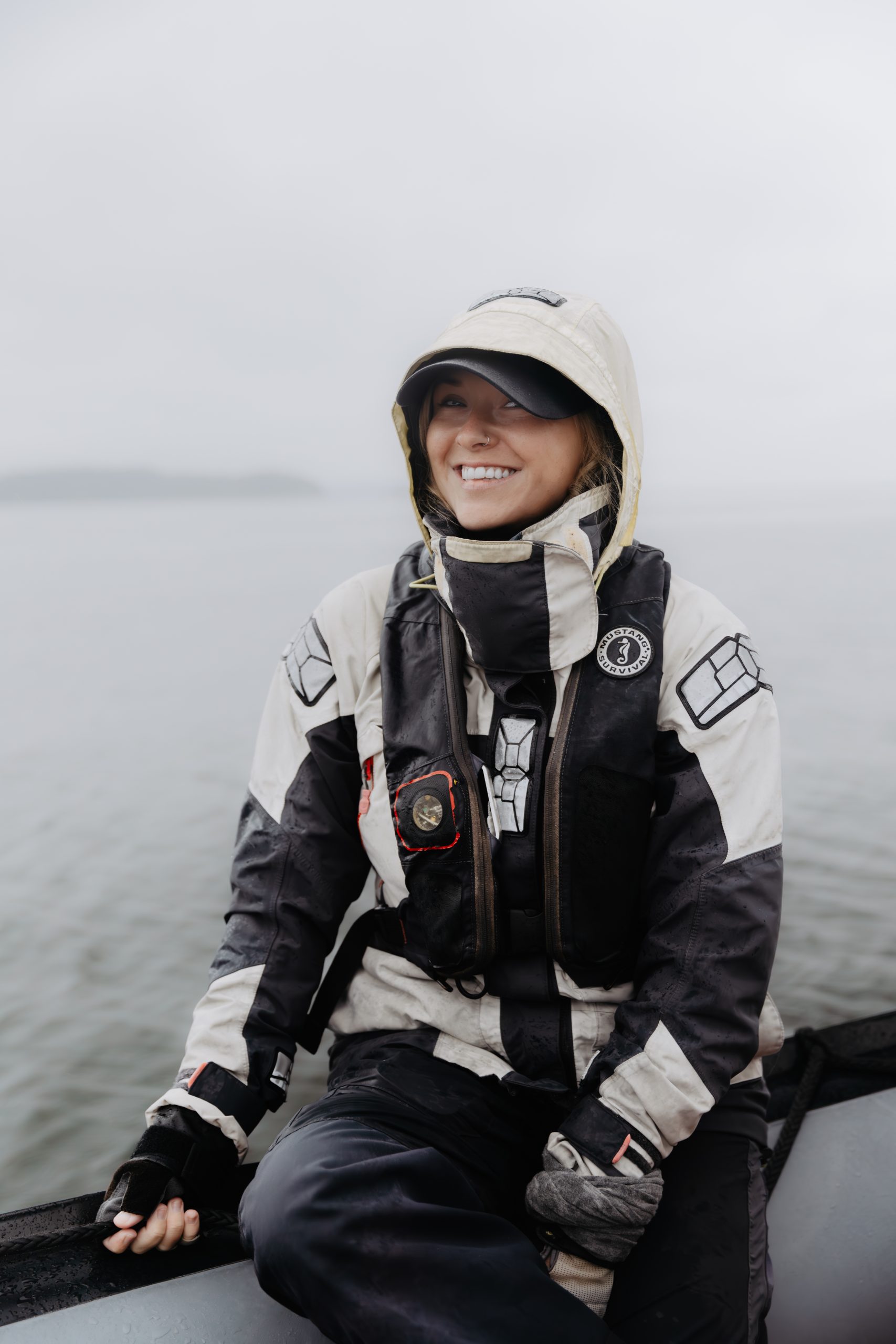 It’s dawn, the air feels crisp on my face and the wind blows through my hair as our boat transits out of the bay. The ocean is still and peaceful, like glass, and the surrounding mountains look like a watercolour painting spread across the horizon as the sun starts to creep over them. I hear the faint sound of blows as I spot clouds of breath emerging from the water in the distance. I smile and soak it all in as I embark on a new day protecting BC’s whales.