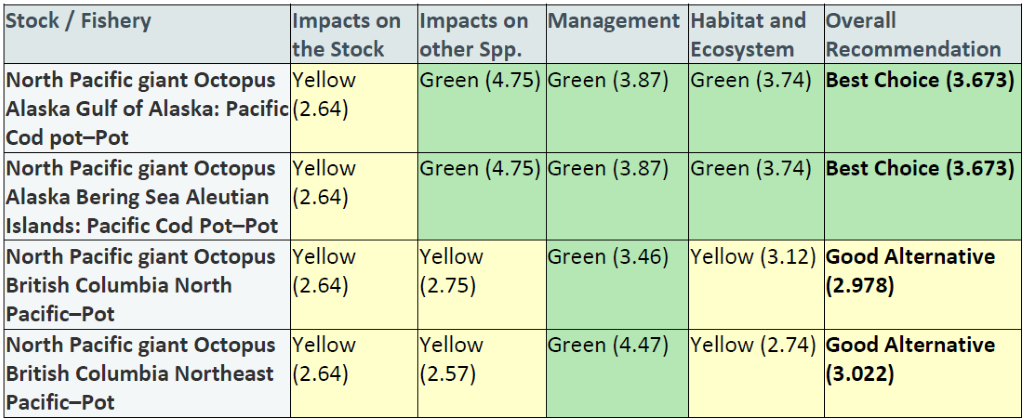Laurenne Schiller. 2015. Giant Pacific Octopus Alaska, British Columbia. Seafood Watch, Monterey Bay Aquarium, California