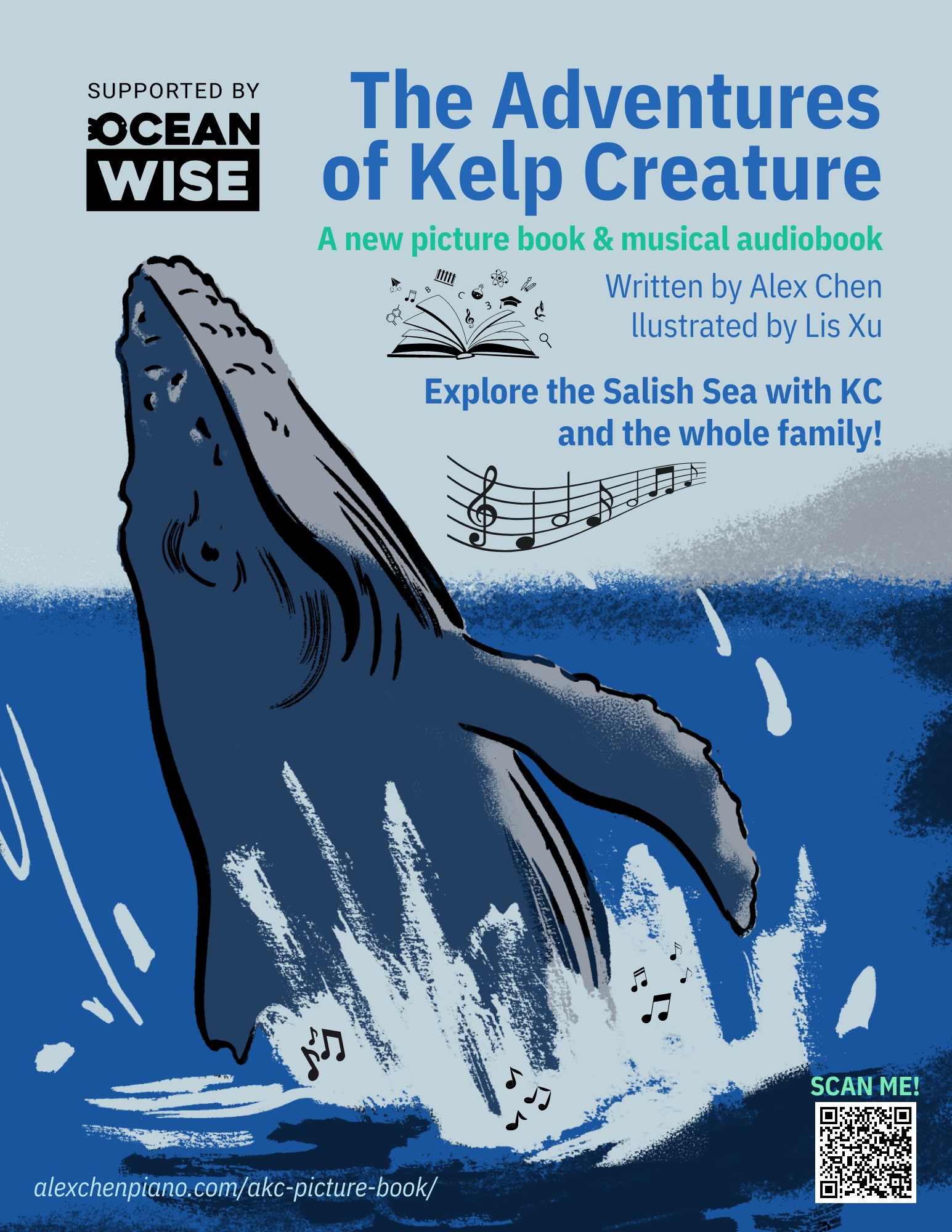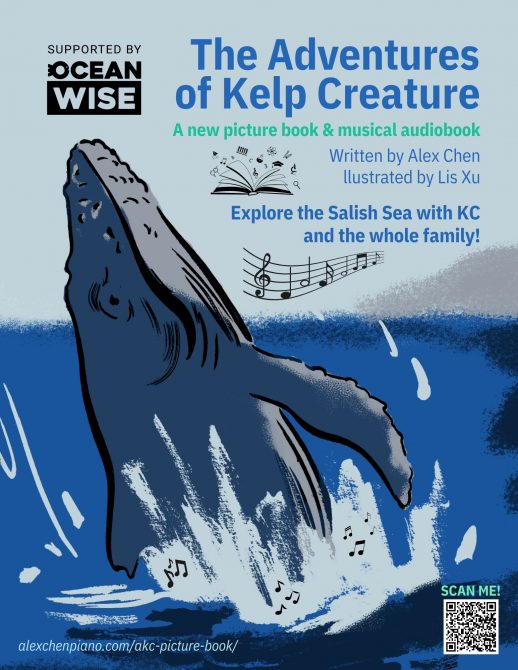 Based on the Ocean Bridge musical narrative of the same name, use this book to recount KC’s journey in your own voice or follow along while listening to the musical narrative/audiobook! With beautiful new illustrations from artist Lis Xu, immerse yourself in the antics of the flora and fauna in West Coast waters!