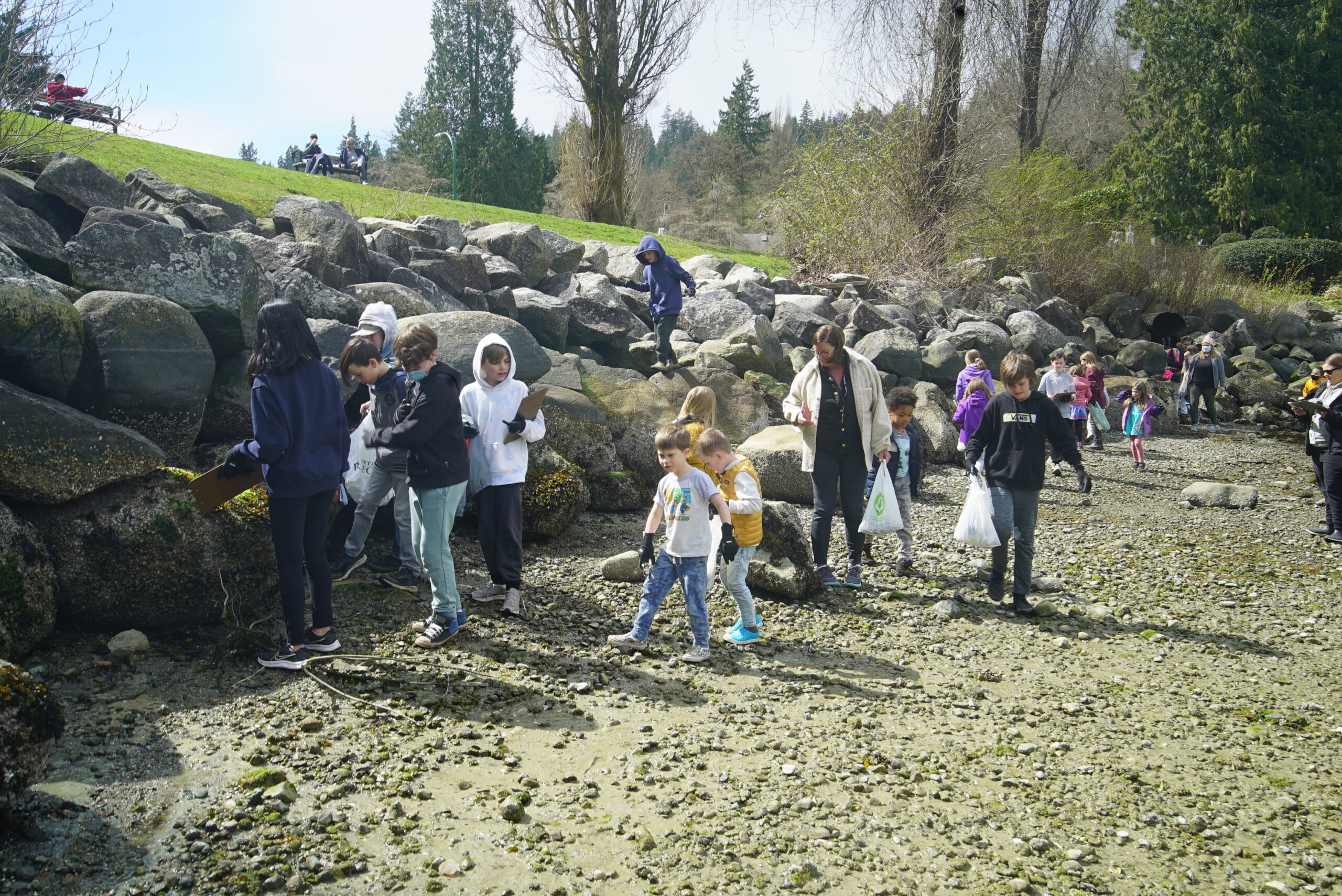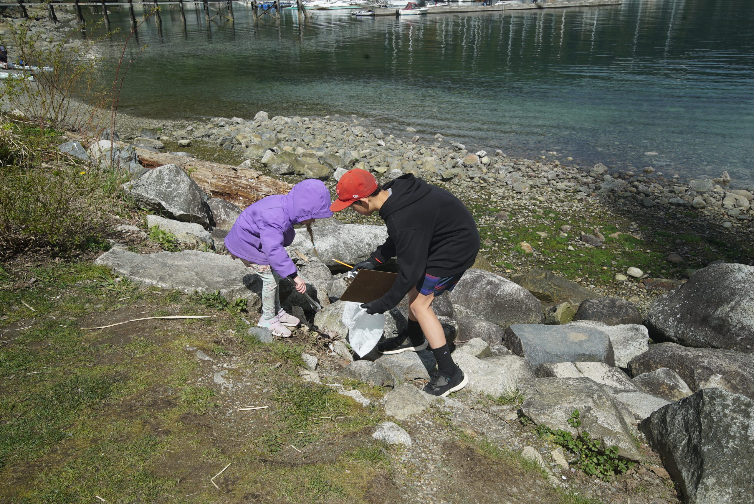 Nettoyage des rivages d'Ocean Wise a aidé le district scolaire à organiser des opérations de nettoyage des déchets dans les écoles de North Vancouver, notamment en formant des élèves leaders et en fournissant des fournitures. Dans le cadre du nettoyage à l'échelle du district, près de 4 000 élèves de tous âges ont ramassé des déchets dans leur communauté. Les élèves ont trié les déchets pour en extraire les éléments recyclables et ont consigné leurs découvertes sur des cartes de données en tant que citoyen.ne.s scientifiques. Les déchets ramassés dans les communautés scolaires comprenaient des aliments et des boissons à usage unique, du papier, des textiles mis au rebut et quelques objets aléatoires, dont une bouilloire et un pneu !